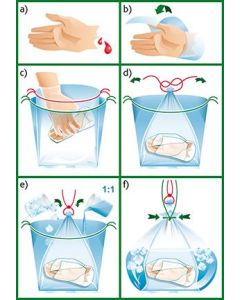 Pussin sisältö laitetaan replantaatiopussiin. Tyhjän paketin avulla mitataan sama määrä kylmää vettä ja laitetaan granulaatin sekaan. Kylmävaikutus on riippuvainen ulkolämpötilasta ja lisätyn veden lämpötilasta.